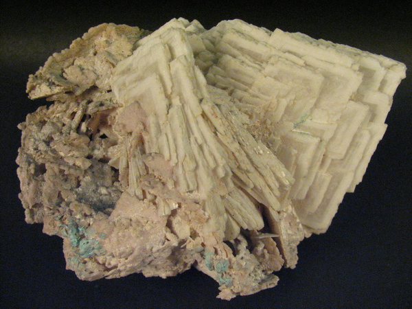 Rúžicovitá drúza bílých tence tabulkovitých krystalů barytu. Sãcãrîmb, Rumunsko. Velikost vzorku 9×5 cm. Sbírky Geologického pavilonu VŠB-TU Ostrava, foto J. Jirásek 2006.