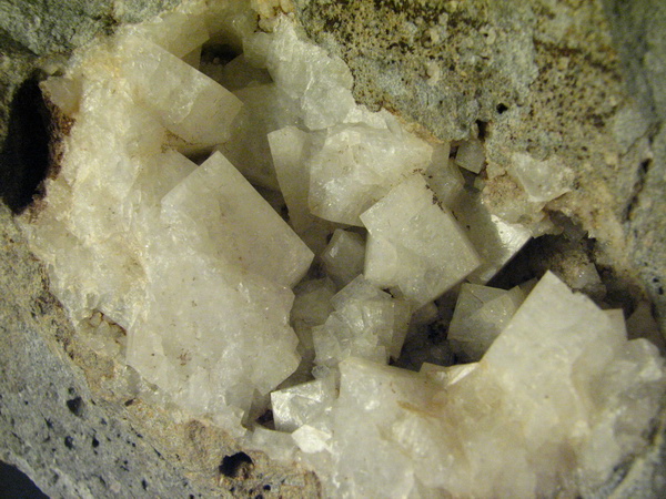 Drúza klencových krystalů chabasitu v dutině dioritového porfyritu. Maglovec, Slovensko. Velikost vzorku 10×7 cm. Sbírka J. Jiráska, foto J. Jirásek 2009.