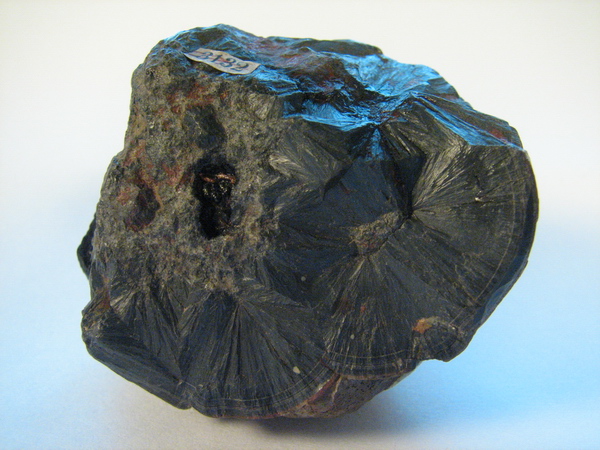 Černý ledvinitý baddeleyit s radiálně paprsčitou strukturou. Morro do Ferro, Poços de Caldas, Brazílie. Velikost vzorku 5,5×3 cm. Sbírka Mineralogicko-petrografického oddělení Moravského zemského muzea v Brně, foto J. Jirásek 2006.
