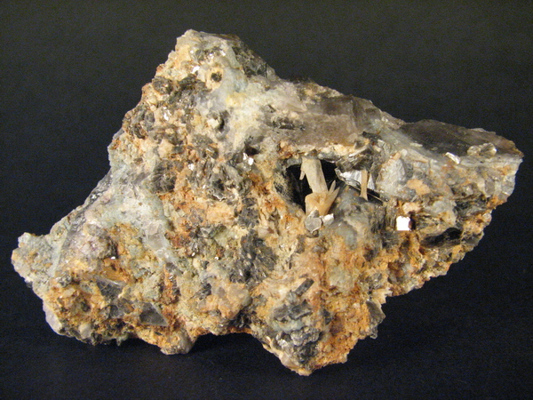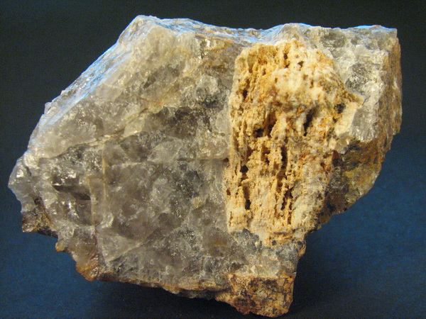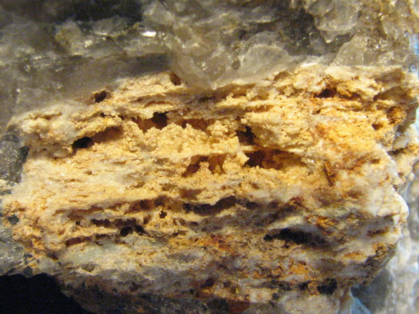 Drobné nažloutlé krystalky bertranditu v dutině po rozloženém berylu v křemeni. Palermo No. 1 Mine, Groton, New Hampshire, USA. Velikost vzorku 7,5×5 cm. Sbírka Mineralogicko-petrografického oddělení Moravského zemského muzea v Brně, foto J. Jirásek 2006.