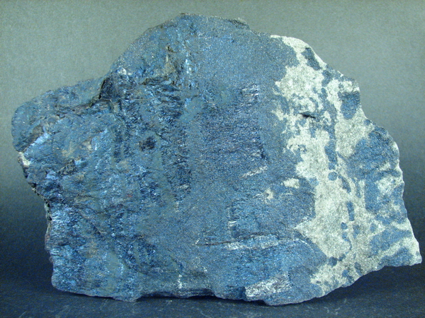Drúza velmi tenkých tabulkovitých krystalů modrofialového covellinu. Bor, Srbsko. Velikost výřezu 9×7 cm. Sbírky Geologického pavilonu VŠB-TU Ostrava, foto J. Jirásek 2010.