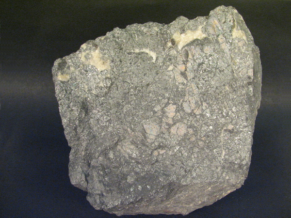 Žíla světle šedého kusového niklskutteruditu. Důl Svornost, Jáchymov. Velikost vzorku 9×8,5 cm. Sbírky Geologického pavilonu VŠB-TU Ostrava, foto J. Jirásek 2006.