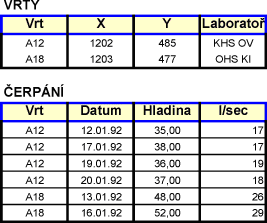 Toto je přesný popis vzniku tabulky. Je zřejmé, že právě v uvedeném příkladě se většinou ve výstupní tabulce ocitnou nesmyslné kombinace údajů. Jestliže např. vrt A18 zasahuje jen do ostravského souvrství (tj. logická je jen kombinace [O,A18]), přesto se ve výstupní tabulce objeví i kombinace [K,A18] a případné další.