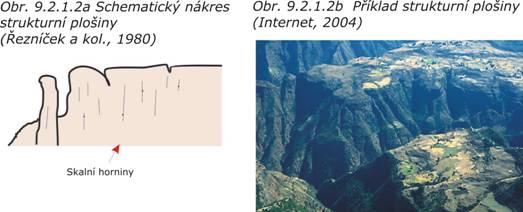 Strukturní plošiny (obr. 9.2.1.2a,b) jsou rozsáhlé rovinaté povrchy, místy členěné roklemi a údolími se strmými svahy, které se vytvářejí v územích tvořenými horizontálně anebo subhorizontálně uloženými horninami. Základové půdy obvykle tvoří skalní horniny a proto jsou stejnorodé, únosné a nestlačitelné. Někdy však může kvalitu snižovat sprašový pokryv.