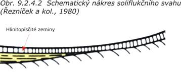 Soliflukční svahy (obr. 9.2.4.2) jsou kryté soliflukčními uloženinami rozdílných vlastností, které vznikly v klimatických podmínkách pleistocénu (střídání ledových a meziledových období). Sklony těchto svahů jsou celkem mírné a vytvářejí tak příznivé podmínky pro zástavbu.