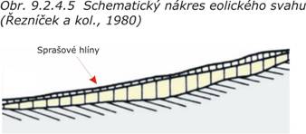 Eolické svahy (obr. 9.2.4.5) mají obvykle hladký a zarovnaný povrch tvořený sprašemi a sprašovými hlínami, které z hlediska jejich vlastností (prosedání spraší) neposkytují vhodné podmínky pro zástavbu.