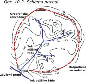 Rovnice hydrologické bilance je vyjádřením zákona o zachování hmoty. Řeší se pro hydrogeologicky ucelenou oblast - povodí (obr. 10.2) a pro přirozený časový cyklus - hydrologický rok (tj. od 1.11. do 31.10.). Povodí je oblast omezená tzv. rozvodnicí (čára konstruovaná od závěrného profilu na toku a probíhající po nejvyšších místech terénu); oblast z níž srážky, které zde spadnou, jsou svedeny do daného toku povodí (Grmela, 2004).