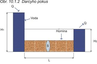 Teoretický základ proudění (filtrace) podzemních vod v horninovém prostředí je dán tzv. Darcyho zákonem (obr. 10.1.2).
