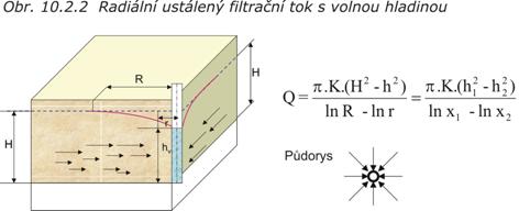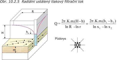 a)    radiální proudění (ve směru os x  a  y) – typ proudění ke studni (vrtu), (obr. 10.2.5)