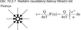 c)    radiální proudění (ve směru os x  a  y) – typ proudění ke studni (vrtu), (obr. 10.2.7)