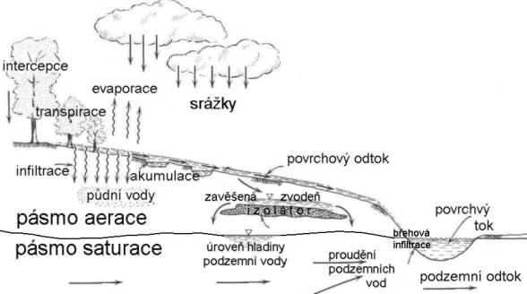 Hlavním zdrojem povrchových a podzemních vod jsou atmosférické srážky. Rozčlenění těchto srážek na jednotlivé složky