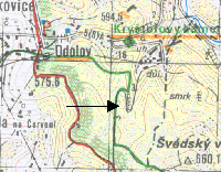 Křižany, 10 km z. od Liberce, halda starého dolu 3,5 km v. od