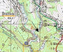 doprava, po asi 2 km velký stěnový činný lom (za mostkem přes Zlatý