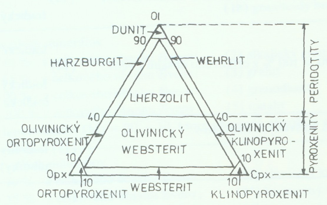 ortoklas a plagioklas je kyselejší – oligoklas. Složení tmavých minerálů