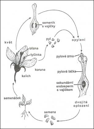 Životní cyklus krytosemenných rostlin. (Kvaček