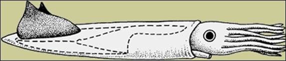 Obr. 1: Rekonstrukce belemnita (dsc.doscovery.com).