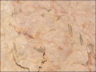 Obr. 3: Svrchnojurský vápenec s rostry belemnitů,