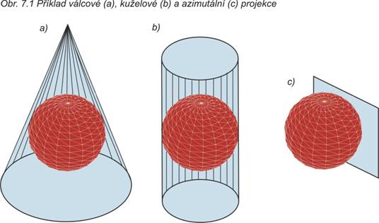 na válcovou, kuželovou, azimutální a smíšenou (obr. 7.1).