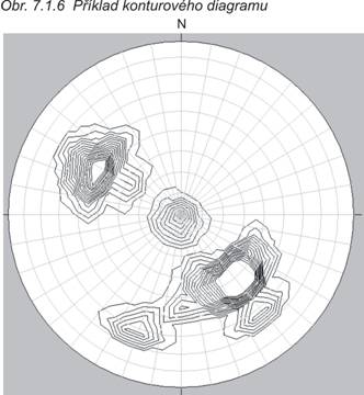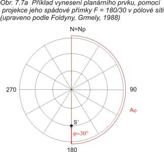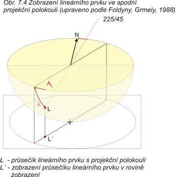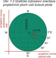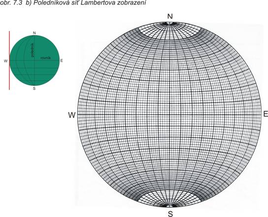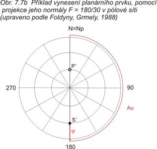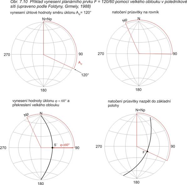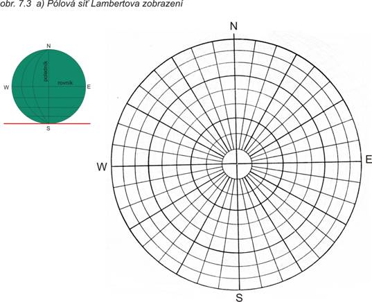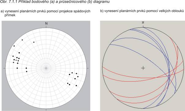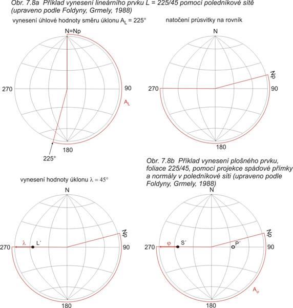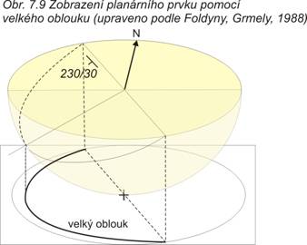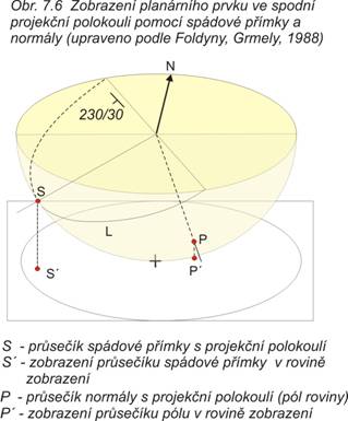 (sférická projekce). Geologické prvky se potom zobrazí jako průsečíky (u