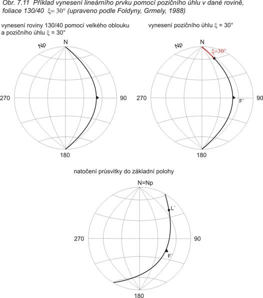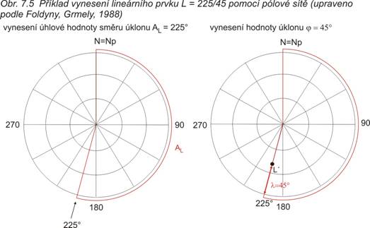 v terénu (viz. kap. 6. - Měření geologickým kompasem). Zobrazovaná přímka