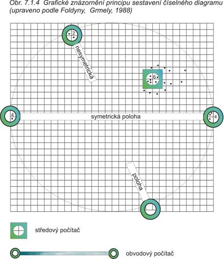 diagram bodový, který se převádí pomocí čtvercové sítě, středového a obvodového