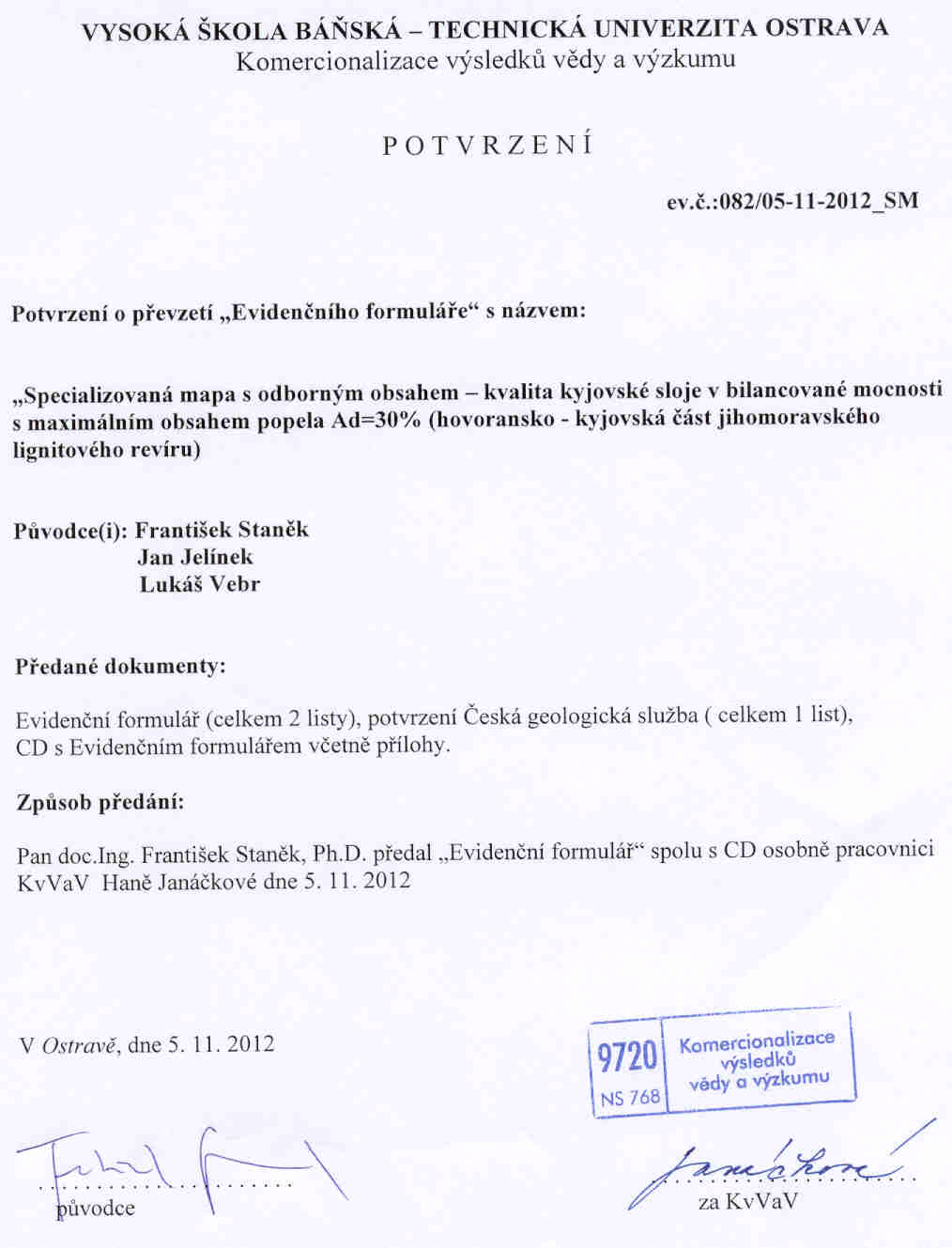 Protokol o převzetí výsledků do evidence je dostupný zde .