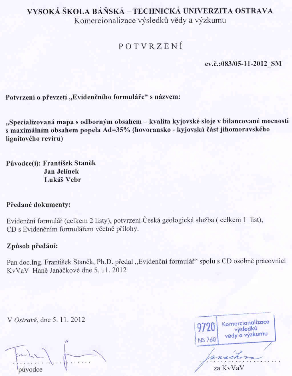 Protokol o převzetí výsledků do evidence je dostupný zde .