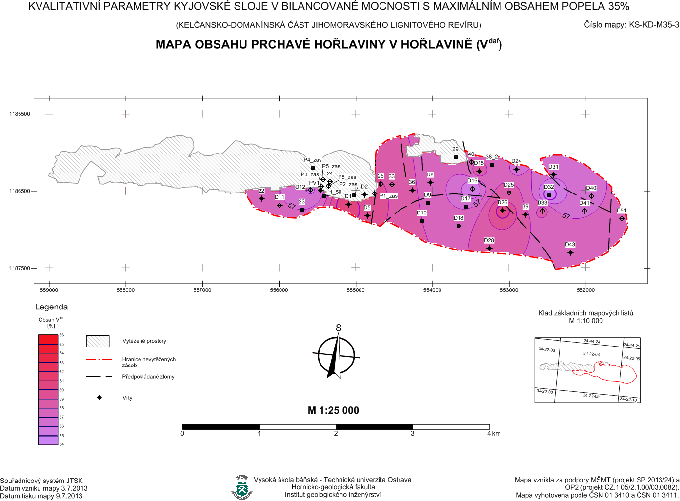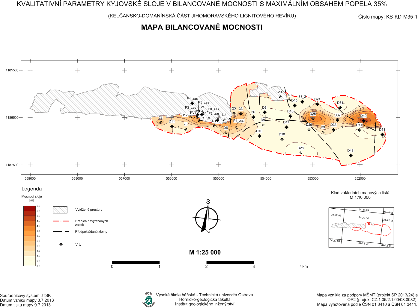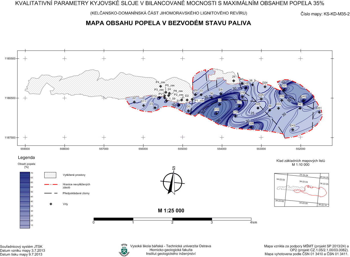 Svazek specializovaných map s odborným obsahem KVALITATIVNÍ PARAMETRY KYJOVSKÉ SLOJE V BILANCOVANÉ MOCNOSTI S MAXIMÁLNÍM OBSAHEM POPELA Ad = 35% (kelčansko – domanínská část jihomoravského lignitového revíru)
